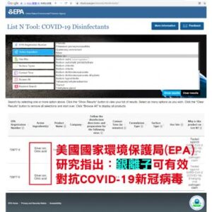 美國國家環境保護局(EPA)證實了奈米銀可以有效抑制新冠肺炎